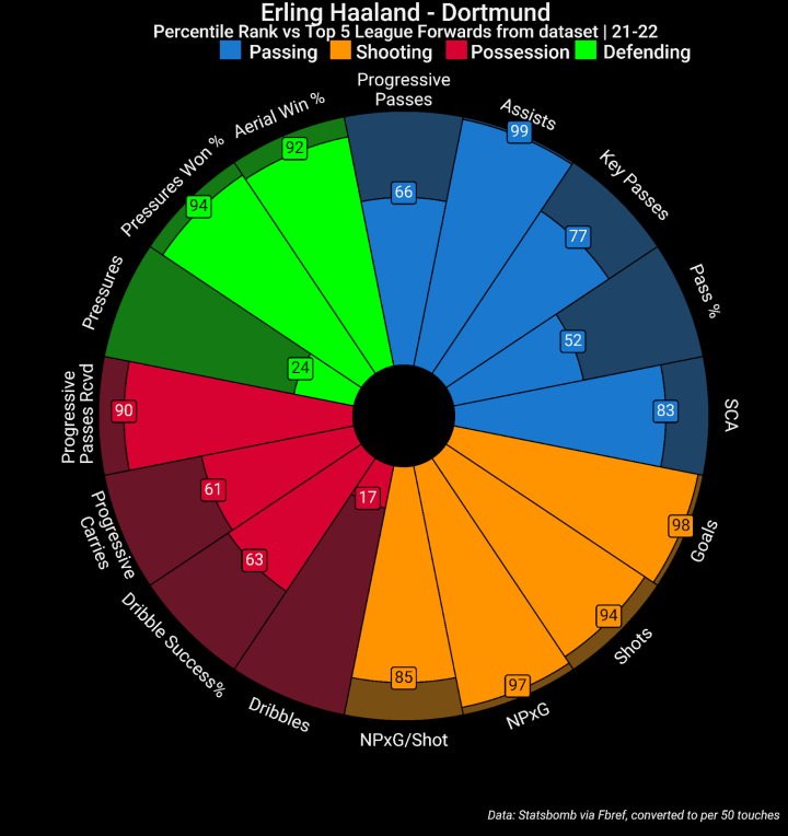 接下来,作为比较,我们来看看哈兰德的数据图。在根据现实因素进行过滤之前,哈兰德是候选列表的第一名。