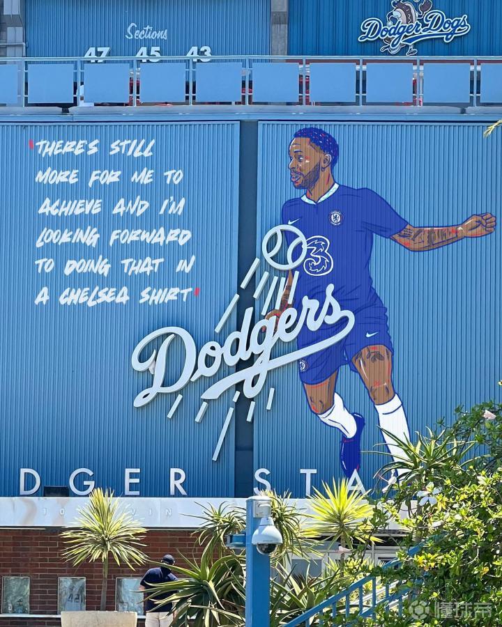 牌面!加盟切尔西后,斯特林壁画出现在洛杉矶道奇体育场外