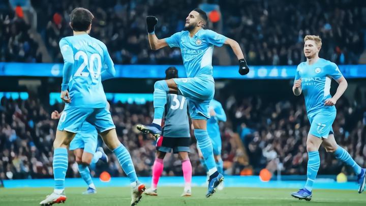 (2021/22赛季英超第19轮,曼城6:3莱斯特城,比赛第14分钟,马赫雷斯左脚爆射右上角点射得分)
