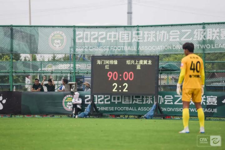 第87分钟,绍兴上虞翼龙8号孟祥斌直接任意球破门,2:2。