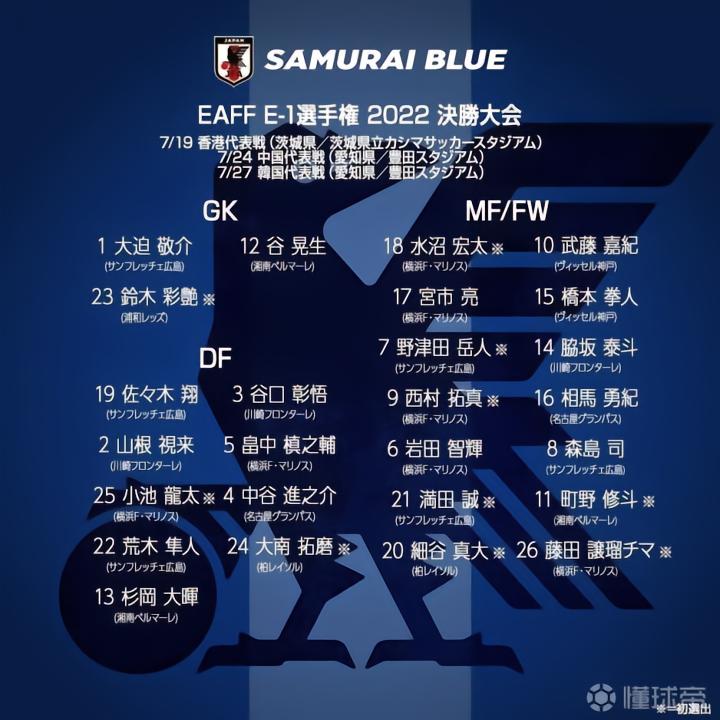 受到世界杯开赛时间变更以及“五换制”落地等政策影响,欧洲俱乐部在这个夏窗异常忙碌,季前备战时间被压缩,大手笔引援令人目不暇接,日本的旅欧军团自然也是被裹挟其中。2022年2月,森保一在欧洲考察期间收获颇丰,遂决定在8月份继续前往欧洲观看日本球员的训练和比赛,7月份的东亚杯自然成为J联赛球员的舞台。此次征战东亚杯的26名日本球员全部来自J联赛,武藤嘉纪和宫市亮曾有过留洋经历,但也正是这些“明星”球员的入选引来了争议。