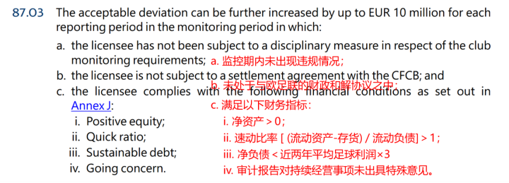 对于满足特定条件的俱乐部,每年的亏损上限还可以再上浮1,000万欧元,即每个周期可最多亏损9,000万(平均每年3,000万)。也就是说,俱乐部亏损余地增加了至少一倍,最多可以达到原来的三倍。