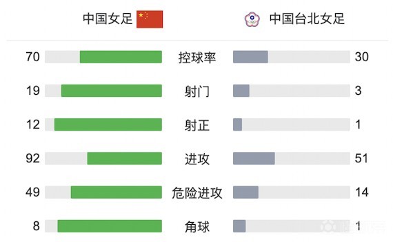北京时间7月20日14:30,女足东亚杯小组赛首轮,中国女足对阵中国台北女足。上半场,中国女足占据场上优势,张琳艳破门并多次制造威胁,姚伟传中制造乌龙,王珊珊中楣,中国台北两名球员丁旗、蓝昱絜不到20分钟就都受伤离场;下半场,中国女足依然连续制造威胁,娄佳惠中柱,唐佳丽造险,最终中国女足2-0战胜中国台北女足拿下开门红。
