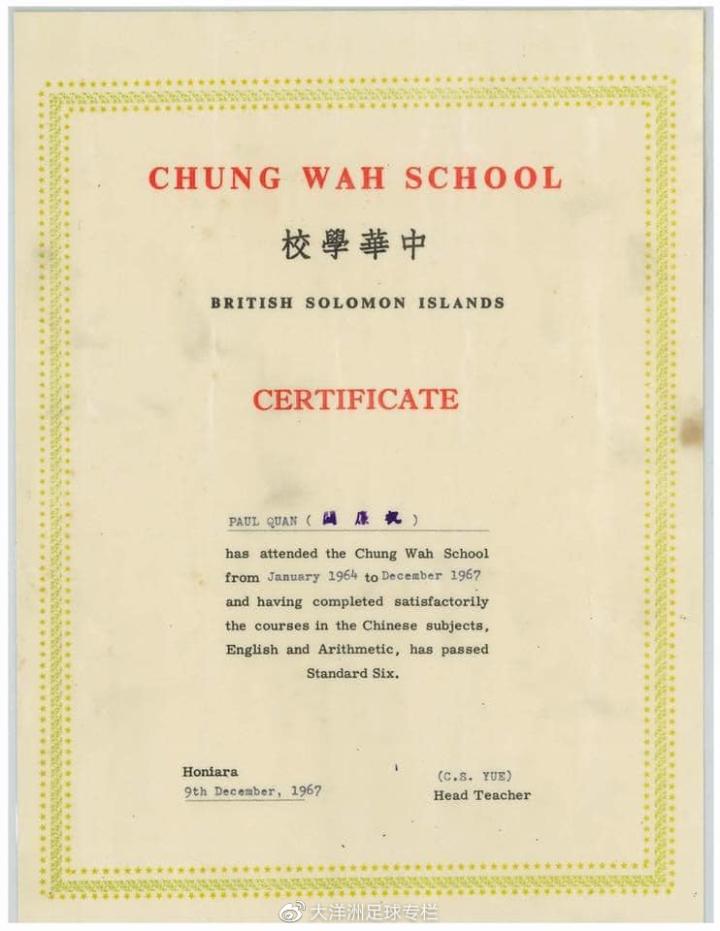 这所学校上午教授英文课程,下午教授粤语课程。第一位专业教师是Fung Shiu Kat(别问,问就是不会拼),这是一位来自香港的专业教师。1952年的时候它通过英国圣公会美拉西尼亚传教会和香港主教的安排抵达所罗门。这所学校不断发展壮大,已经成为所国首都的主要学校。这所学校还有很一部分高级教师去了所罗门国立大学。你说中国人到底有没有完成文化垄断?咱是不知道。