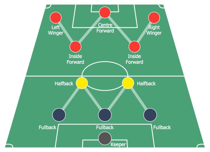 从19世纪70年代到1925年,几乎所有的球队都用的是2-3-5的阵型。但在1925年关于越位的规则发生了一个重大的改变——原来进攻球员需要比三个防守队员更远离球门,但是新规则规定只需要两名防守球员比进攻球员更靠近球门,进攻球员就不越位。这一规则的变更使所有球队的防守策略都随之改变,大部分主教练选择让一名中场球员后撤以形成三后卫。但是这样一来,剩下的两名中场将面临着非常强的压力。所以,让之前的两名内锋回撤,分担中场球员的压力成为了一个非常好的选择,而将之做的最彻底同时也是最成功的,当属时任阿森纳主帅赫伯特-查普曼。他首创了3-2-2-3,也就是所谓的WM阵型,并用这一阵型率领阿森纳统治了整个30年代,而WM阵型也在英国足坛流行了长达30年之久。