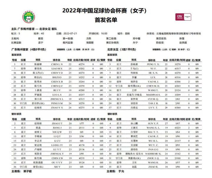 (资料据自、鸣谢:中国女足官微、梅州客家足球俱乐部,整理编辑:耀武酒肆工作室、同道南方)