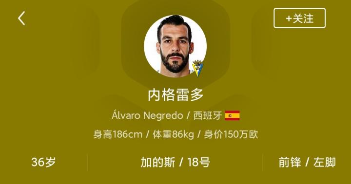 20-21赛季,35岁老将与加的斯结缘,为保级而奋斗。作为球队头号球星,他一次又一次证明了球队的选择是正确的。每当赛季之初,众多媒体球迷总是预测加的斯本赛季是降级热门,但是在球星内格雷多的带领下,20-21赛季获得联赛12名(内格雷多进8球)提早保级,本赛季(内格雷多进7球)也能够涉险保级。内格雷多整个足球生涯除了那次伤病运气都不差,冠军拿到了,豪门效力过了,钱赚到了,抓住这只西班牙野兽,就是抓住了好运,抓住了保级的绳索。希望加的斯下赛季能够继续留在西甲,给大家带来快乐,西乙冠军不要也罢。