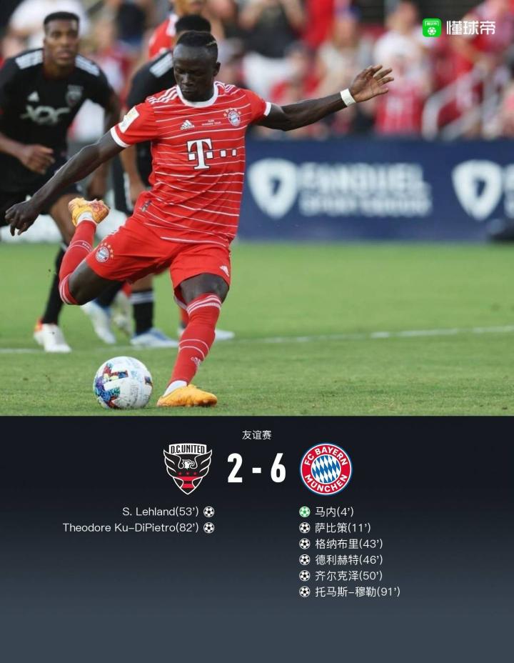 【拜仁6-2华盛顿特区联,马内、德利赫特双双收获加盟后首球】