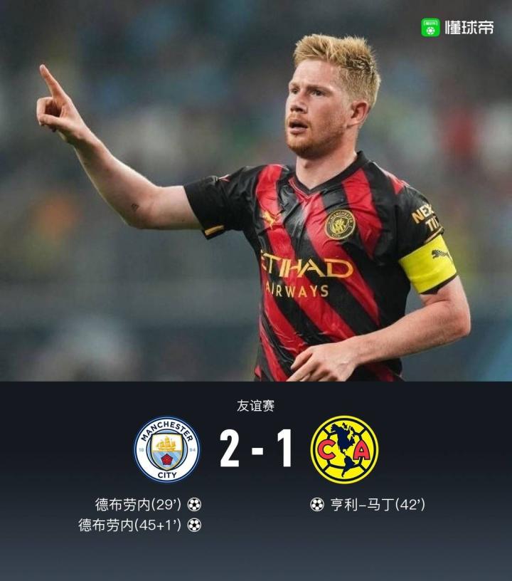 【我做饼给自己吃!德布劳内爆射世界波+双响,曼城2-1美洲】