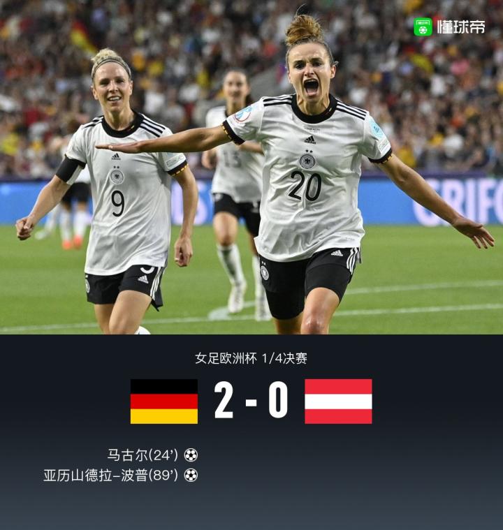 【德国女足2-0奥地利女足晋级四强,奥地利门将送礼+三中柱】