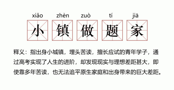 “小镇做题家”最早诞生于豆瓣,大致指的是那些出身于农村或者小城镇的学子,埋头苦读,通过高考实现了人生的进阶,却缺乏一定的视野和社会资源,即使靠多年苦读,也很难追平原生家庭和出身带来的差距。