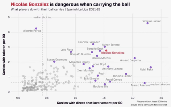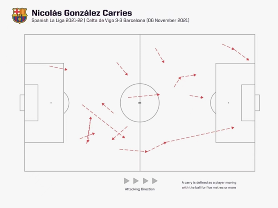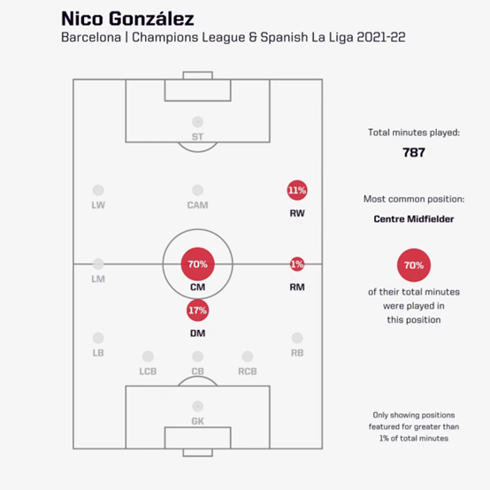根据我们的数据,尼科在21/22赛季西甲联赛所有巴塞罗那球员中,平均次数(1.5)和带球进攻(2.8)位列第一。