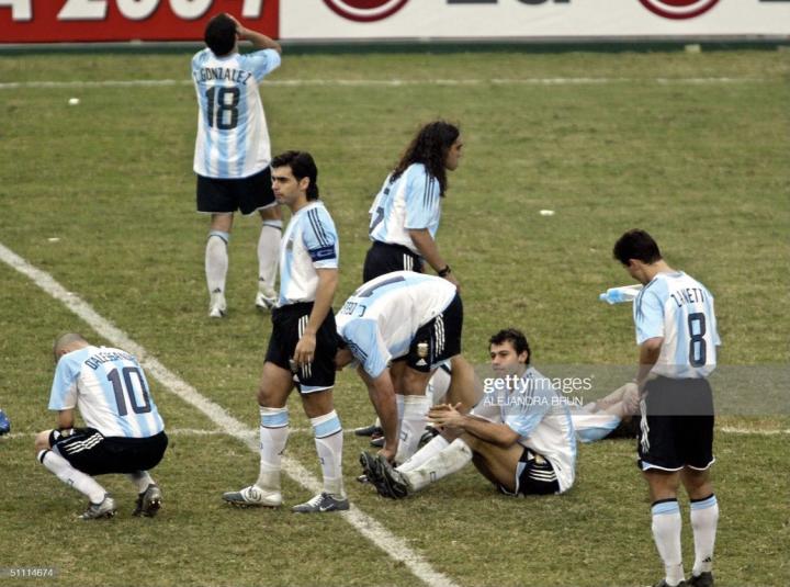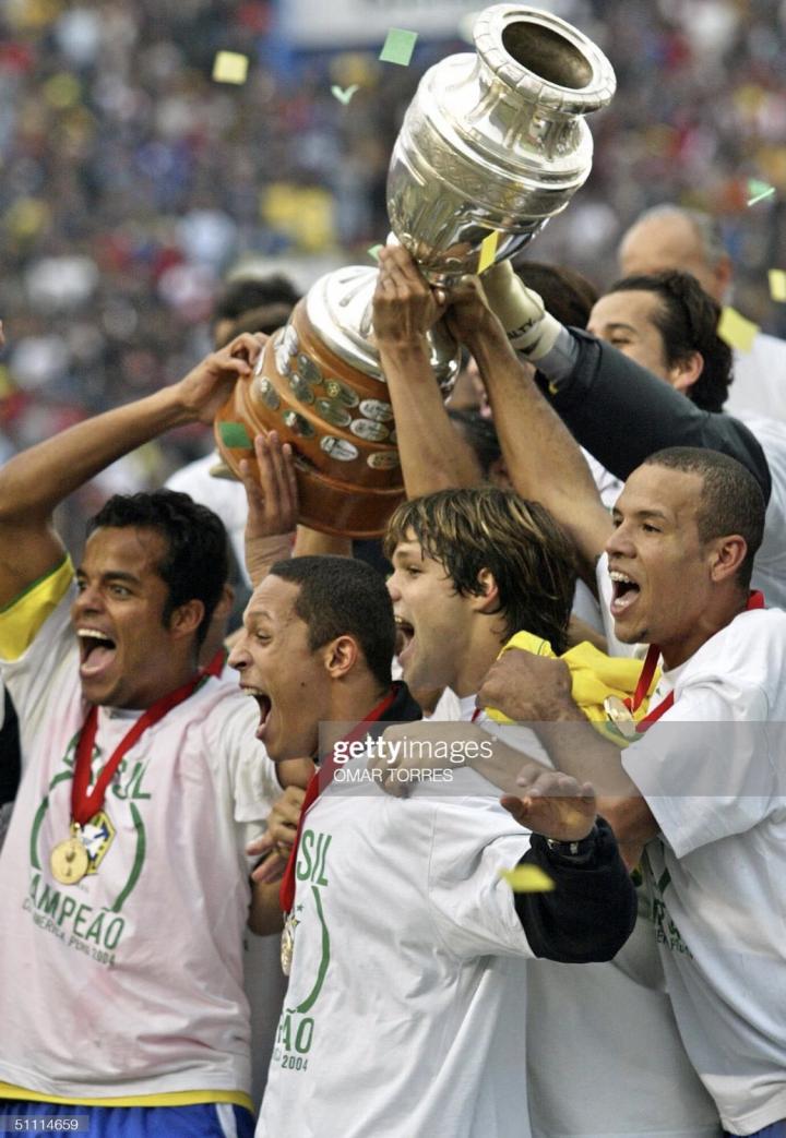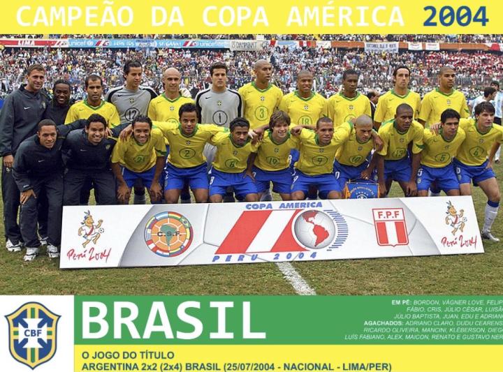 历史上的今天:巴西击败阿根廷夺得04美洲杯冠军当...毛罗儒尼奥尔 @懂球帝2022-07-25 13:16历史上的今天:巴西击败阿根廷夺得04美洲杯冠军 当地时间2004年7月25日,在秘鲁利马国家体育场举办的2004美洲杯决赛中,巴西国家队在常规时间2-2绝平后,点球大战4-2击败阿根廷队,捧起了美洲杯的冠军奖杯。 值得一提的是,当届决赛中有瓦格纳洛维(巴西、山东泰山)、特维斯(阿根廷、上海申花)、马斯切拉诺(阿根廷、河北华夏幸福)、法比亚诺(巴西、天津权健)等中国联赛旧将。展开更多