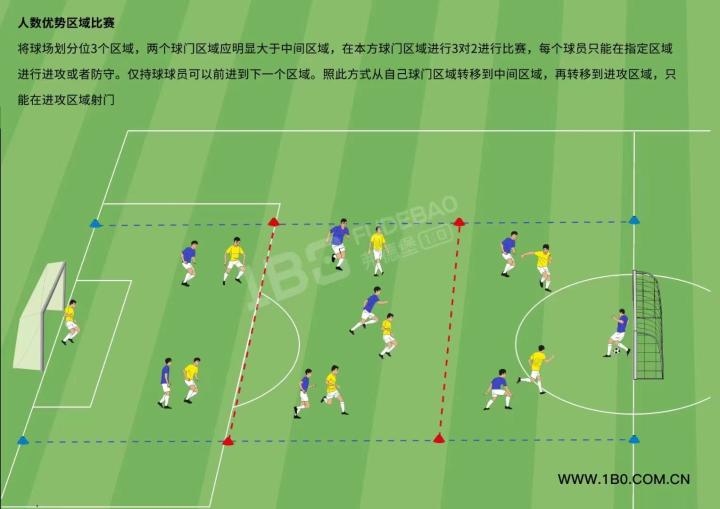 这种练习形式是对球场空间利用的基础,对应了比赛中小范围控球的场景,更是一切足球战术的基础。