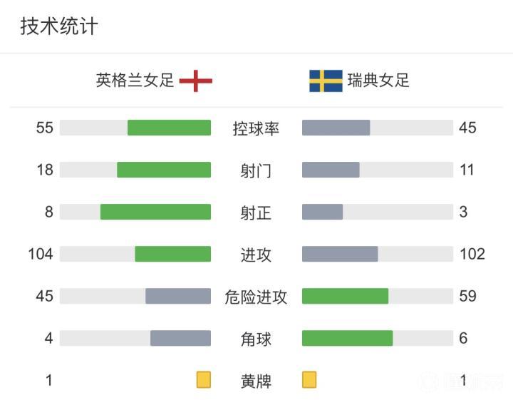 第34分钟,米德禁区内转身抽射破门,英格兰女足1-0瑞典女足。