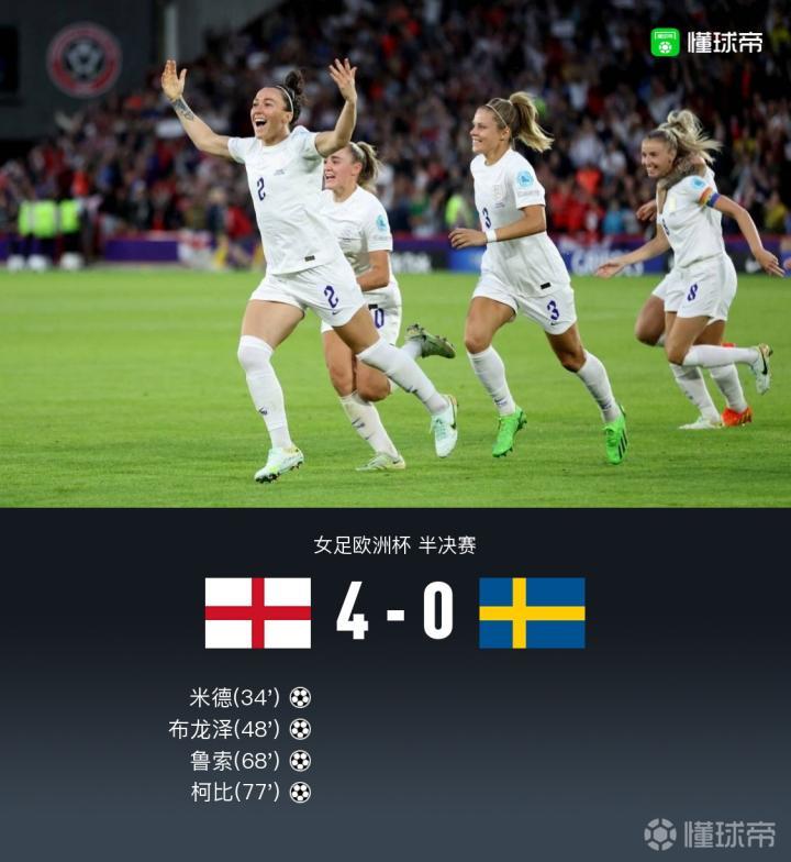 13年后再入决赛!英格兰女足4-0瑞典女足,鲁索脚后跟破门