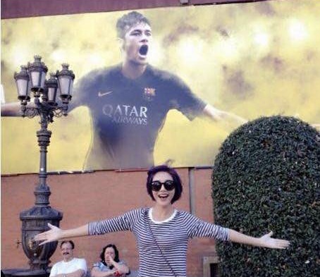 “小姨妈”算是众所周知的巴萨死忠,在去西班牙出差工作途中也不忘抽空朝圣诺坎普,并在微博中表示终于圆梦。