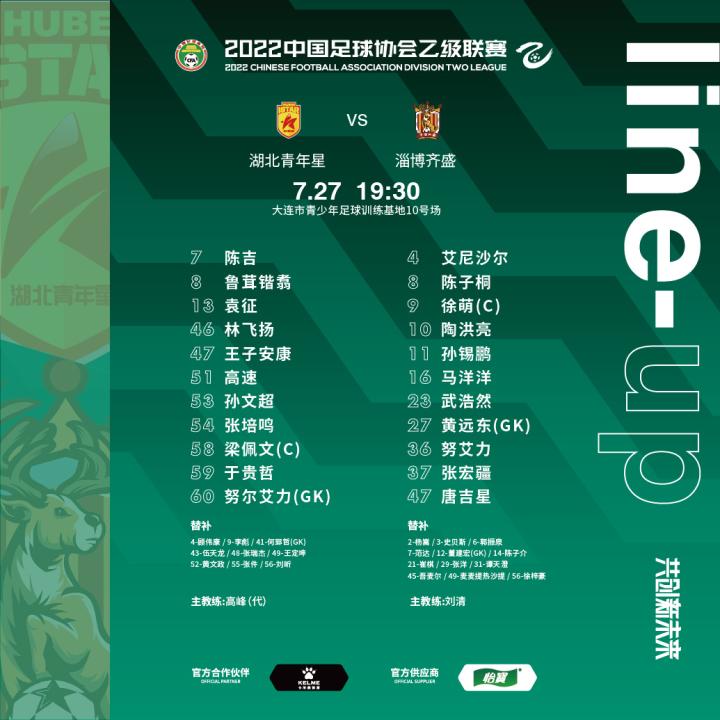 7月31日15点30分,中乙大连赛区第七轮比赛,湖北青年星将对阵延边龙鼎。