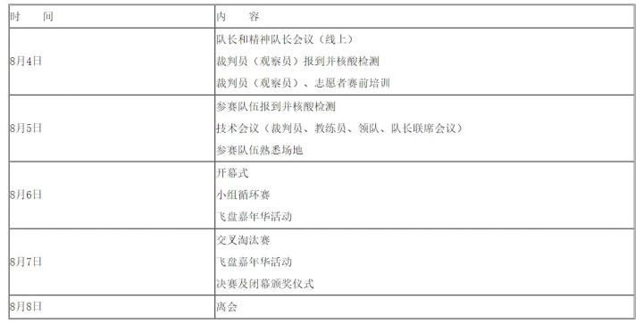 本届比赛将在8月1日截止报名,各参赛队伍交通、食宿和参赛期间所产生的相关费用自理,可选择入驻组委会推荐的酒店。每队每人还需提前缴纳200元/人的赛事服务费。每名参赛人员将获得参赛礼包一份,包含赛事纪念飞盘、赛事纪念衫、比赛补给等。比赛日程安排如下: