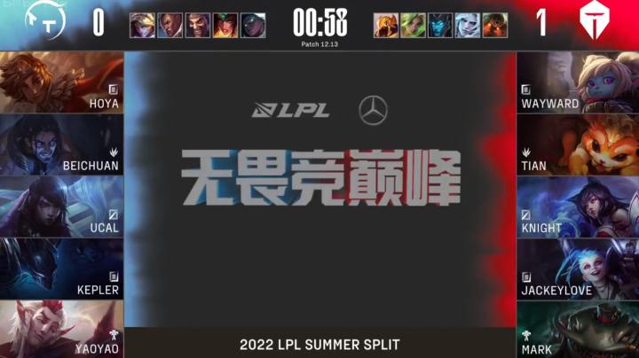 电竞赛事战报英雄联盟2022LPL夏季赛常规赛TES vs TT,TES 2-0零封TT,JackeyLove豪取五杀迎来十二连胜。