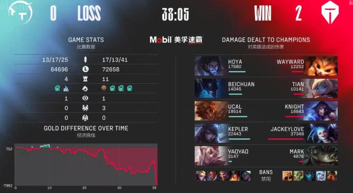 第38分钟,TES果断决策RUSH拿到大龙,JackeyLove豪取五杀一波结束比赛,恭喜TES拿到十二连胜。