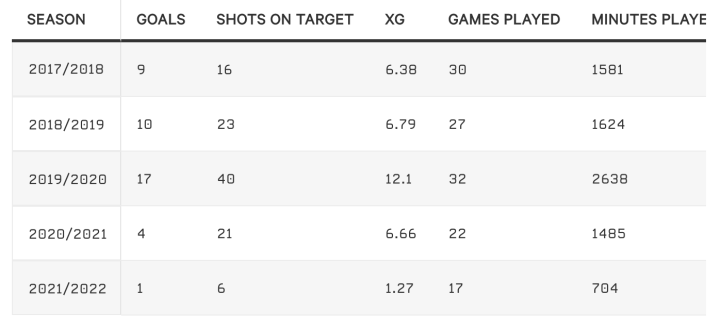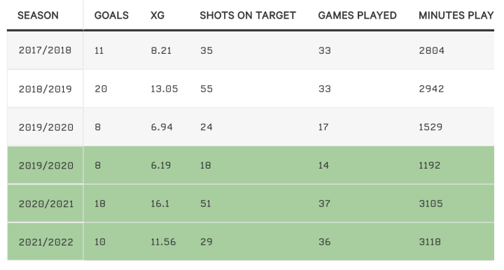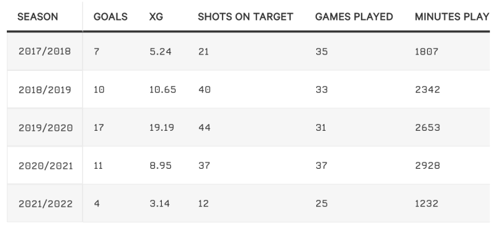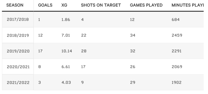 “球员X上赛季打进15球,因此新赛季还会打进15球”,这个逻辑显然不成立。但我们可以收集球员在一段时间内的进球数、射正次数和xG,分析他们的进球方式,对未来的进球数做出合理的预测。