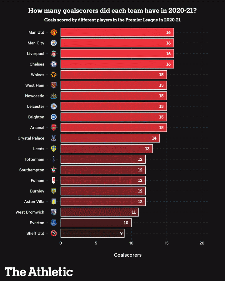2019-20赛季,莱斯特城有过5-0纽卡和9-0南安普顿这样的大胜,这说明并非每个进球的价值都相同。但有一件事情应该是没什么争议的,新赛季想争四的球队得进至少69个球。