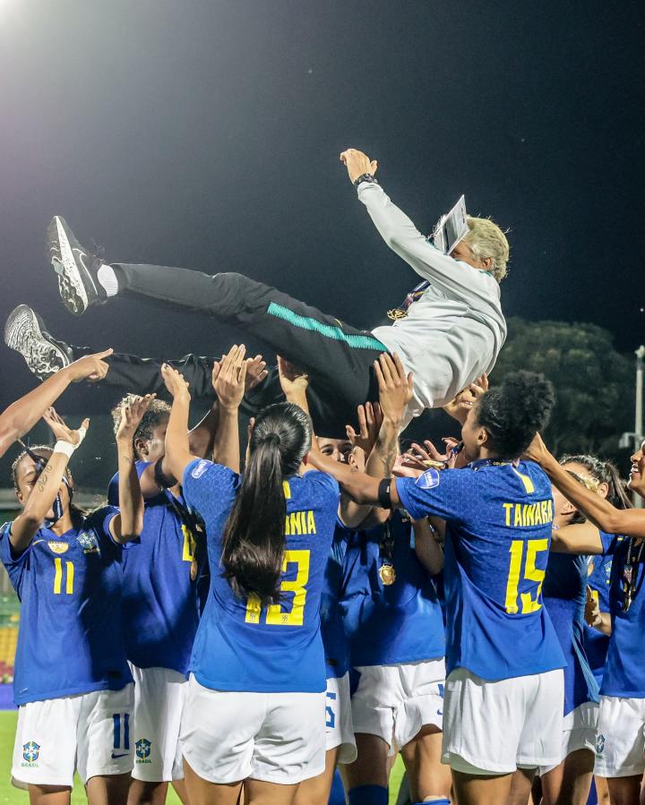 德比尼亚点球一蹴而就,巴西女足决赛1-0战胜了东道主哥伦比亚女足,六战全胜零失球,队史第8次夺得女足美洲杯冠军,并且再度完成四连冠(2010-2022,上一次是1991-2003,阿根廷女足06年打破过垄断)。 决赛最佳球员+赛事最佳球员:琳达-凯塞多(哥伦比亚女足),年仅17岁、效力于卡利体育,本届赛事表现出色,是东道主晋级决赛的进球功臣 最佳射手:亚米拉-罗德里格斯(阿根廷女足),在博卡青年效力,共打进6球,其中小组赛4球并且在大胜乌拉圭女足的比赛中上演了帽子戏法,淘汰赛两球均发生在对阵巴拉圭女足的季军赛中 最佳门将:洛雷娜(巴西女足),效力于格雷米奥,6场比赛首发全勤保持零封 瑞典籍主教练皮娅-桑德哈格带领巴西女足捧杯,据悉她是第一位赢得女足美洲杯冠军的女性教练 2023澳新女足世界杯正赛名额:冠军巴西、亚军哥伦比亚、季军阿根廷 女足世界杯洲际附加赛名额:第4-5名巴拉圭、智利 2024法国巴黎夏奥会女足名额:巴西、哥伦比亚 2023智利圣地亚哥泛美运动会女足名额:第3-6名阿根廷、巴拉圭、智利(东道主直通)、委内瑞拉 (信息参考来源:南美足联官网 https://www.conmebol.com/noticias/brasil-conquista-su-octava-estrella-en-la-conmebol-copa-america-femenina/)