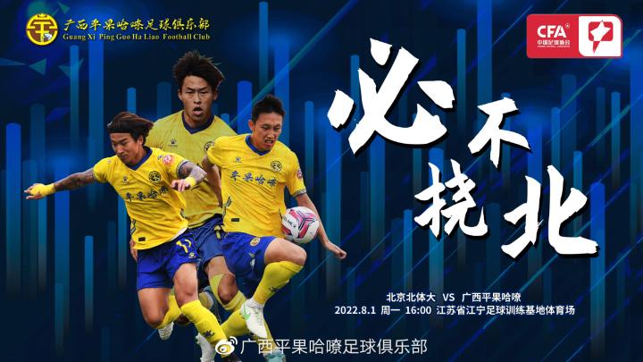 耀武酒肆工作室8月1日16时,2022中甲联赛第12轮,北京北体大VS广西平果哈嘹队,两支球队职业联赛的遭遇战,积12分的北京北体大排名高于广西平果哈嘹,广西将士需要一场胜利提升排名。