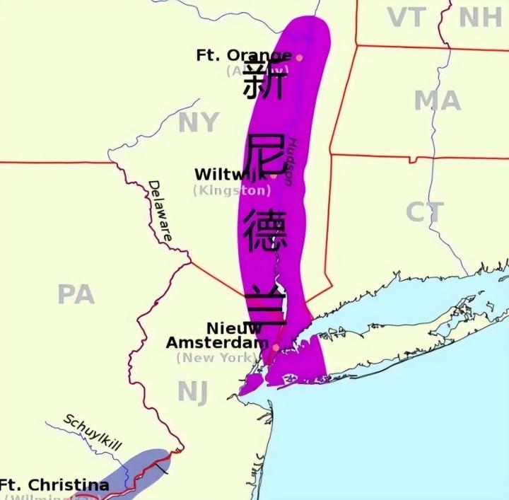 新尼德兰地区,如今成为了美国纽约州、康涅狄格州、新泽西州和特拉华州的部分地区。其首府新阿姆斯特丹有了一个英语名字——纽约,即用英格兰之前的首都约克命名。