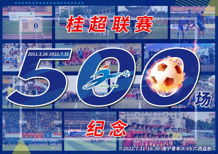 7月31日,本赛季第四轮南宁青年人队主场对广西蓝航队的比赛是桂超联赛史上第500场比赛,为此桂超联赛委员会专门制作了专题海报《500场》,纪念桂超联赛艰辛跋涉历程,这500场比赛历时4285天,跨度12年!