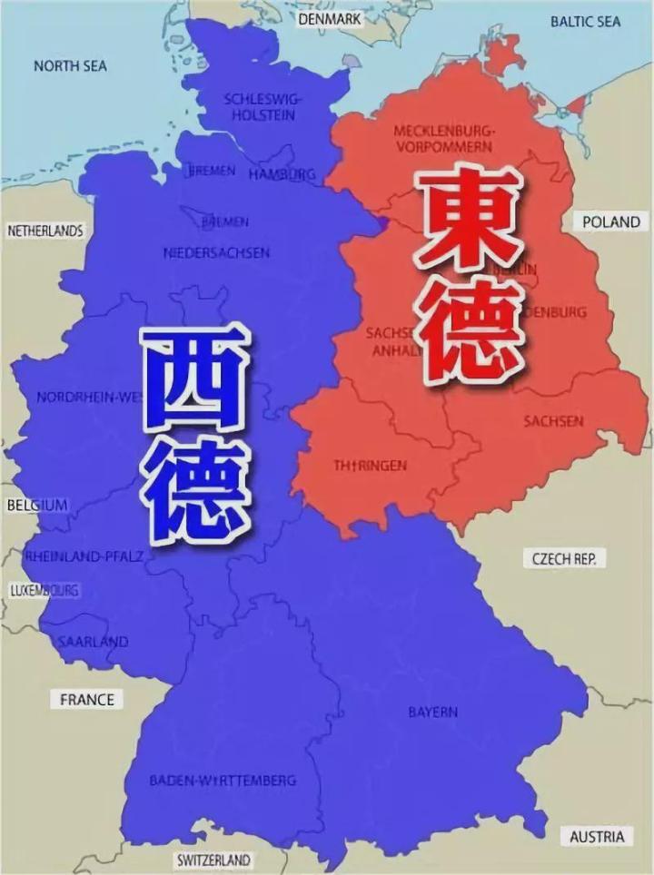 其中,有一个没解决的问题,就是柏林问题。柏林虽然全境在苏占区,但英法美占领区合并为西柏林,成为了镶嵌在民主德国内部的钉子。因此,东德名义上首都为柏林,实则只有东柏林。