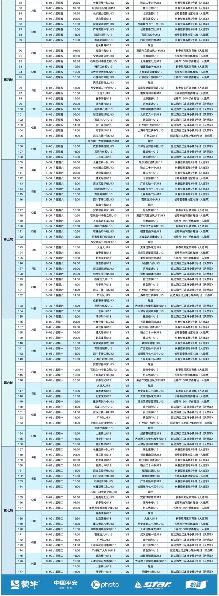 8月1日,第一届中国青少年足球联赛(男子初中年龄段U13、U15组)全国总决赛(下称中青赛)小组赛正式开赛,U13组共57支球队将展开七轮177场精彩对决;U15组共计59支球队将展开七轮189场精彩对决。