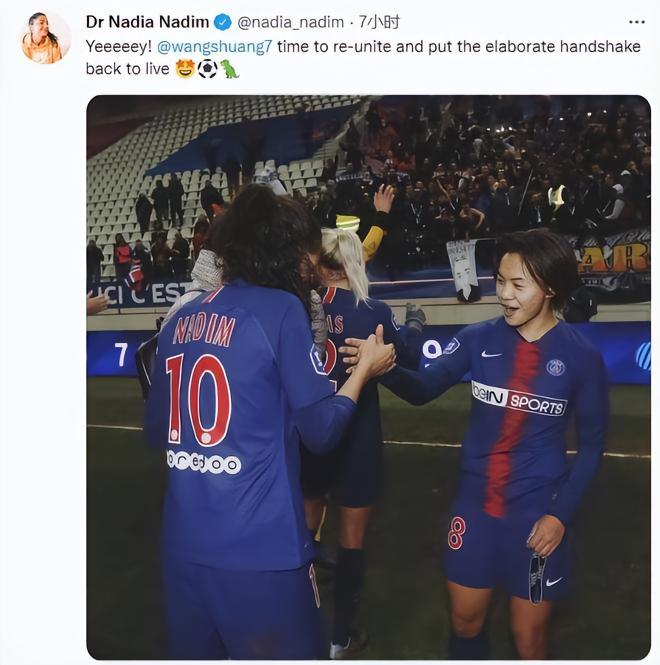 竞技俱乐部在声明中称,他们通过与另一支NWSL球队OL君主队进行交易,得到王霜在NWSL的比赛权,文章写道:“至此,竞技俱乐部扫清了与这名中国女足国脚球星签订合同的障碍。”路队队友也都给出了自己的欢迎,特别是娜迪姆。这名球员曾在巴黎和王霜是队友,她在自己的社媒中也晒出了和王霜的合影表示,期待他的到来一起赢球吧!