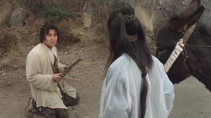 五百年后孙悟空化身强盗头头至尊宝。当遇见预谋吃唐僧肉的妖怪姐妹蜘蛛精春三十娘(蓝洁瑛)和白骨精白晶晶(莫文蔚)时,因为五百年前孙悟空曾与白晶晶有过一段恋情,至尊宝与她一见钟情,但因菩提老祖将二人妖怪身份相告,至尊宝仍带领众强盗开始与二妖展开周旋,过程中,白晶晶为救至尊宝打伤春三十娘,自己也中毒受伤,为了救白晶晶,至尊宝去找春三十娘,遭白晶晶误会,绝望自杀,至尊宝开始用月光宝盒以期使时光倒流。
