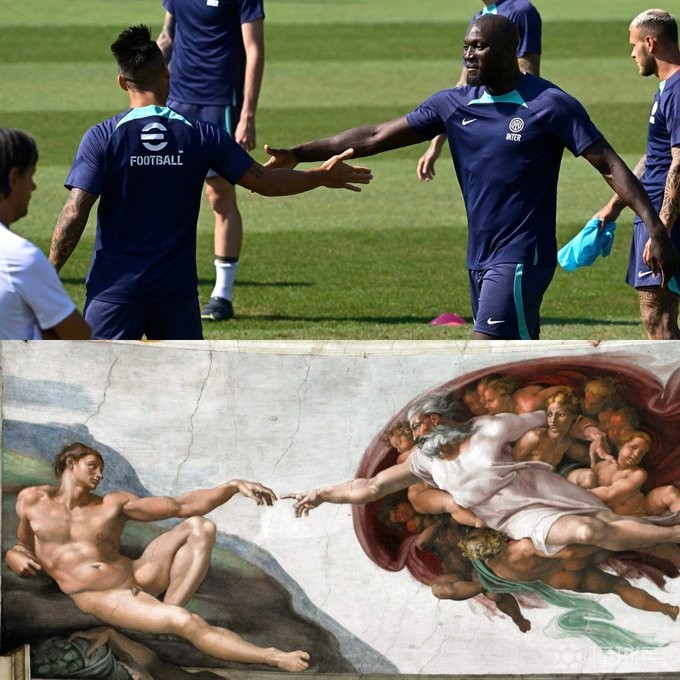 国米官方调侃一高一快:两人要击掌时和《创造亚当》如出一辙