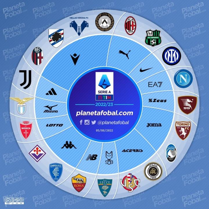新赛季意甲俱乐部球衣赞助品牌分布图。