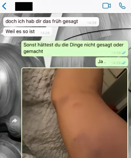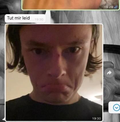 2020年3月,当时J给舒尔茨发了自己的照片。当时J的胳膊和手有淤青和肿块。舒尔茨则回应了一张自己的自拍,嘴角向下,可能是想表示悔过吧。之后舒尔茨写道:“我为此憎恨我自己。”