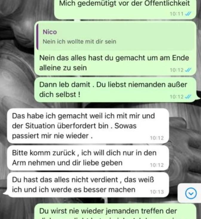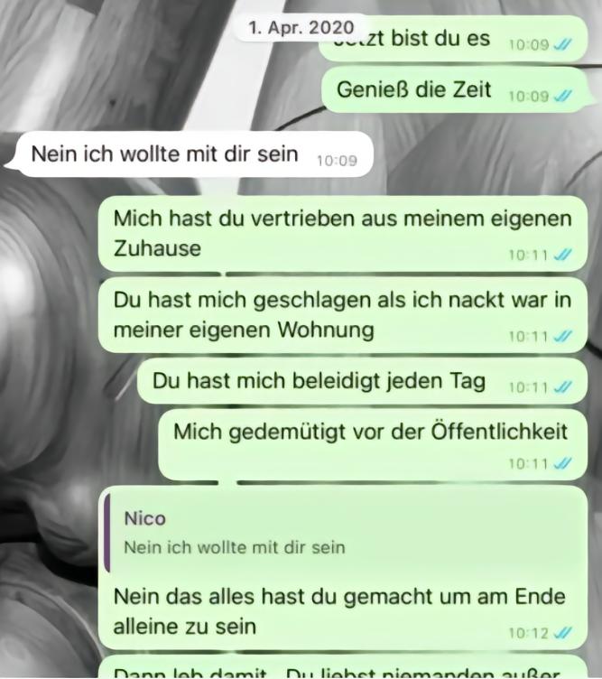 2020年的一封电子邮件中,舒尔茨当时写道:“很对不起,我一直在打你。在威胁你之后,我把你的耳环扔在街上,即使你怀孕时。我知道这是不对的,我打了你,因为我不知道应当怎么办。”