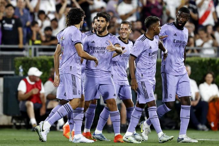 7月31日的一场豪门热身赛在洛杉矶玫瑰碗体育场举行,超过9万人在现场见证皇马季前赛首胜,本泽马点杀连场破门,阿森西奥建功,帮助皇马2-0力擒意甲劲旅尤文图斯,这是皇马在季前赛的最后一场比赛,也是新赛季开始前第一次身穿新款紫色战袍出战。今天的话题,我们就来聊聊这件新晋登场的皇马客场紫色战袍。