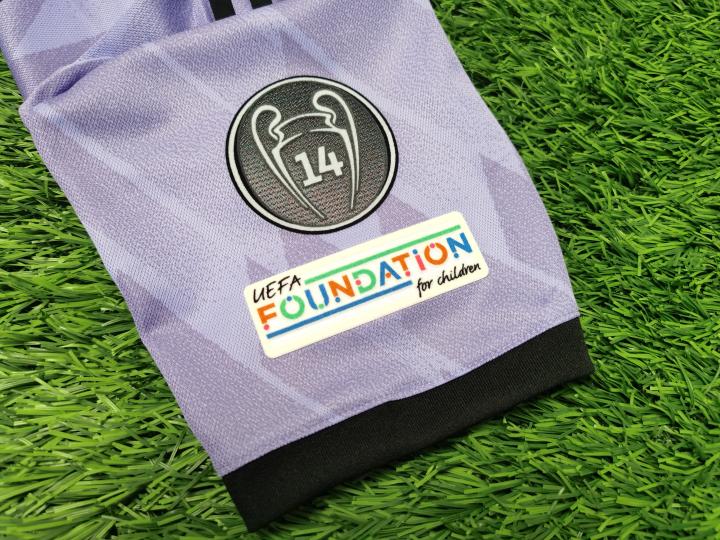 身为欧冠新赛季比赛的卫冕冠军,皇马的球衣右臂上将可以印上代表卫冕冠军的银色卫冕冠军奖杯章,而冠军卫冕章中,也加上了代表14次欧冠冠军的数字”14”,卫冕冠军臂章下方依旧是印着欧足联儿童基金会的公益组织臂章。