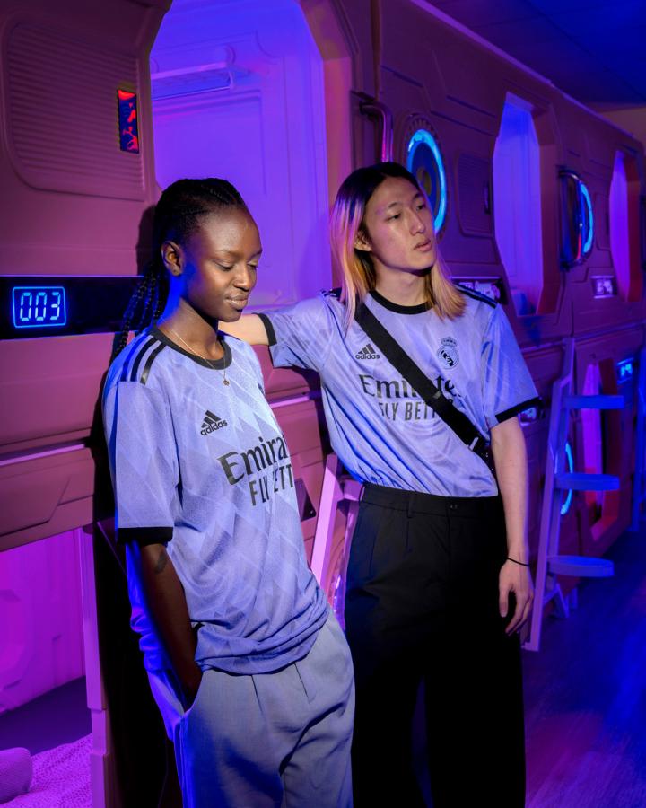 7月1日,阿迪达斯携手皇家马德里发布球队2022-23赛季全新客场球衣,这是在“银河战舰”第十四次夺得欧冠冠军之后发布的第一款球衣,旨在呈现西甲豪门球队客战赛前的感染力——球迷们前往客场的旅途,人头攒动的街头,众人欢呼的球场。