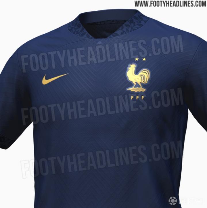 闪亮金色队徽,法国国家队2022世界杯主场球衣曝光