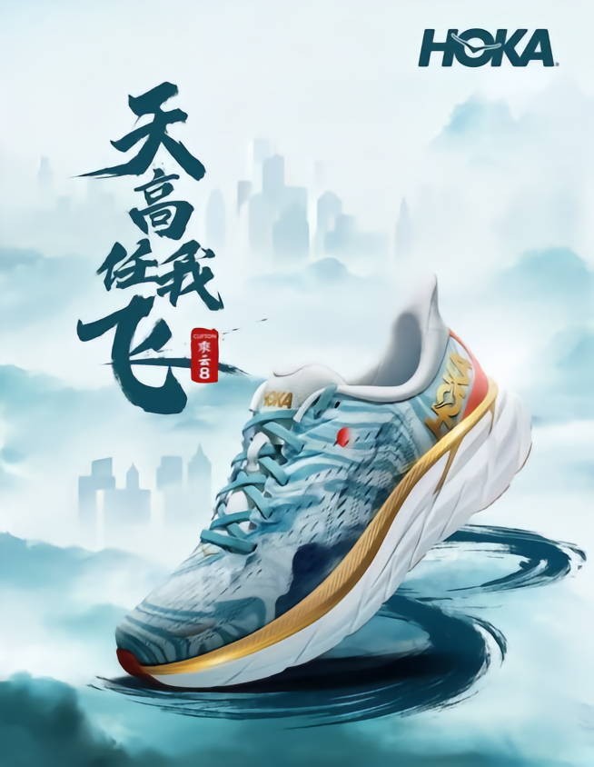 2022年1月1日,面向即将到来的农历新年,HOKA再度献礼中国跑者——推出全新的Clifton 8乘云配色跑鞋,根据品牌方提供的信息,产品设计灵感取自于王安石的经典作品——《登飞来峰》。