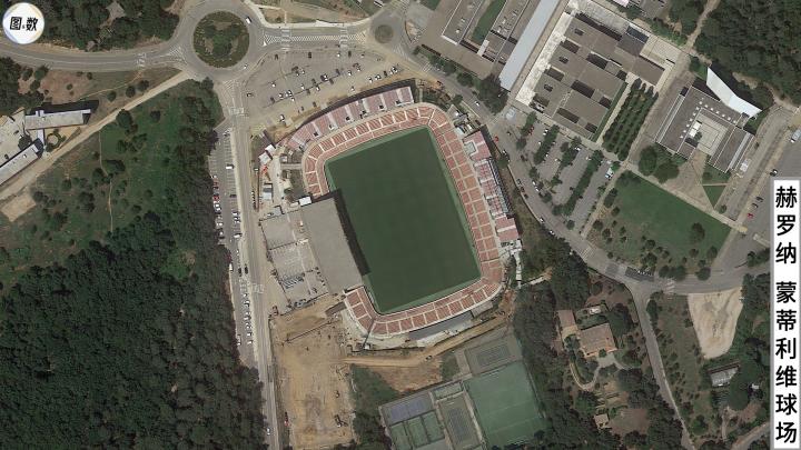 赫罗纳的主场是蒙蒂利维球场,得名于其所在的蒙蒂利维社区(Montilivi),它的容量比较小,只有1.2万人左右,在西甲排最后一名。