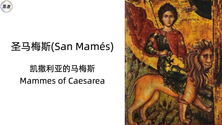 罗马人在公元275年把马梅斯丢入兽群,但他临危不惧,还向田野里的动物布道,以至于狮子都与他作伴,因为此典故加上硬朗的球风,毕尔巴鄂竞技也被称为“圣马梅斯的雄狮”。