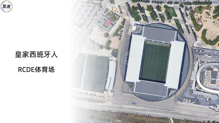 RCDE体育场坐落在略夫雷加特河北岸,名称中的四个字母是皇家西班牙人体育俱乐部(Reial Club Deportiu Espanyol)的缩写,其启用于2009年,拥有4万多个座位。
