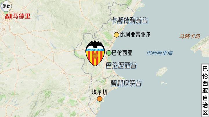 西班牙的行政区划大致可分为自治区-省-市三级,因此,西甲层数最多的套娃就是巴伦西亚自治区巴伦西亚省巴伦西亚市的巴伦西亚足球俱乐部,同城还有一支前西甲球队——莱万特体育联盟。