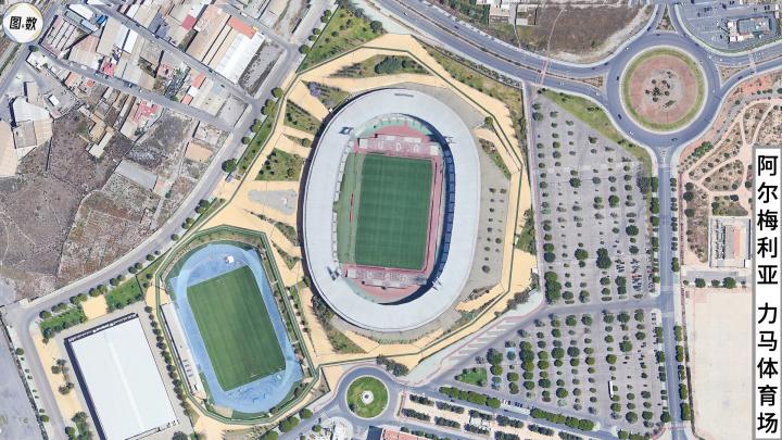 最后一个要说的是阿尔梅利亚体育联盟(Unión Deportiva Almería),他们也是本赛季的升班马,其主场容量为1.5万人,本名是地中海运动会体育场(Estadio de los Juegos Mediterráneos),现由能量饮料品牌Power Horse(有点儿类似于我们的乐虎)冠名为力马体育场。