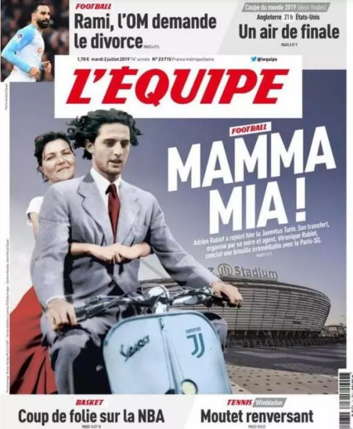 最终尤文开出了签字费1000万欧元,年薪700万欧元的条件,得到了拉比奥,《队报》用《我的妈呀》一语双关在头版头条报道了此事。